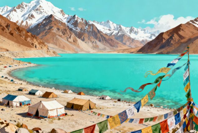 Nubra to Pangong – Lakeside Serenity via Shyok River Drive via Shyok River. Marvel at the turquoise waters of Pangong Lake. |
